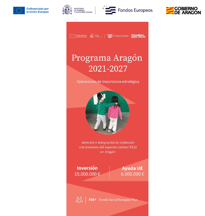 Participamos en la actuación TEA-FSE+ (Atención e integración del alumnado con Trastorno del Espectro Autista), en el marco del Programa FSE+ Aragón 2021–2027, cofinanciada por el Fondo Social Europeo Plus.
