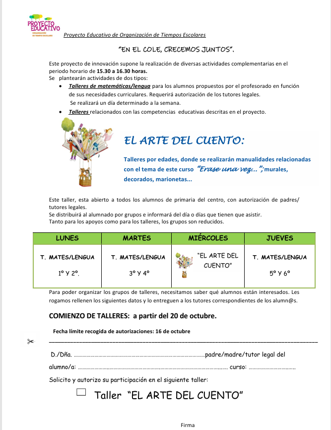 PROGRAMA TIEMPOS ESCOLARES;»EN EL COLE, CRECEMOS JUNTOS»
